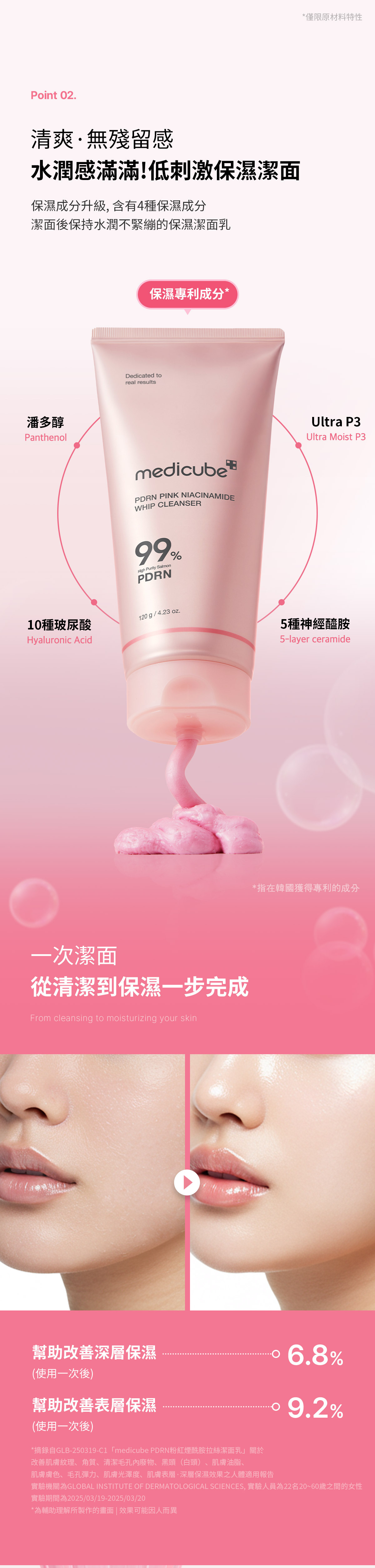 ✓ 99% 高純度PDRN成分 低刺激保濕潔面